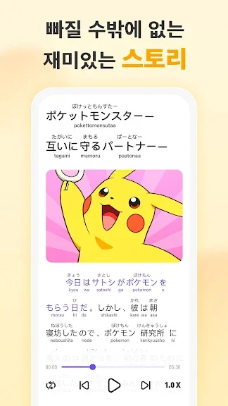 앱에 담겨 있는 일본 여성 성우의 본토 발음을 꾸준히 듣고 따라하신다면 어느 순간 일본어 실력이 상당히 향상되어 있을 것입니다.