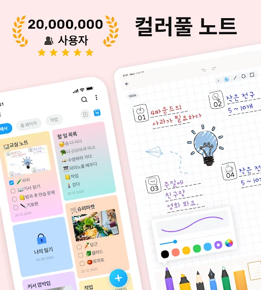 Jnotes는 손글씨로 메모하는 즐거움을 극대화한 앱입니다. 실제 펜으로 쓰는 듯한 부드러운 필기감과 다양한 색상, 모양 도구를 통해 당신의 메모가 더욱 생동감 있게 변모합니다. 자유로운 형식의 노트 작성은 물론, 형광펜과 지우개 도구를 활용해 필요에 따라 세부 내용을 강조하고 수정할 수 있습니다.
