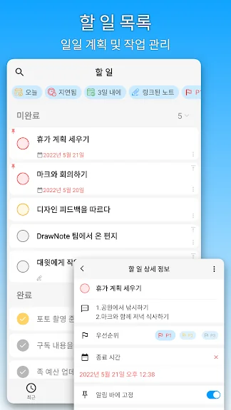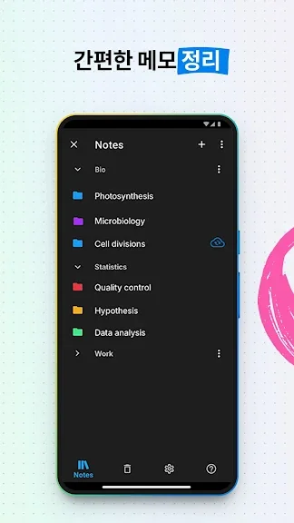 각 노트는 슈퍼 노트, 텍스트 노트, 마인드맵 등 다양한 유형으로 관리할 수 있으며, 폴더를 활용해 체계적으로 정리할 수 있습니다. 할 일 목록 기능도 있어 중요한 일을 놓치지 않고 관리할 수 있죠.