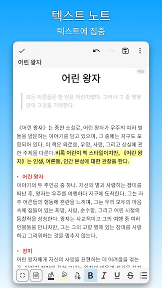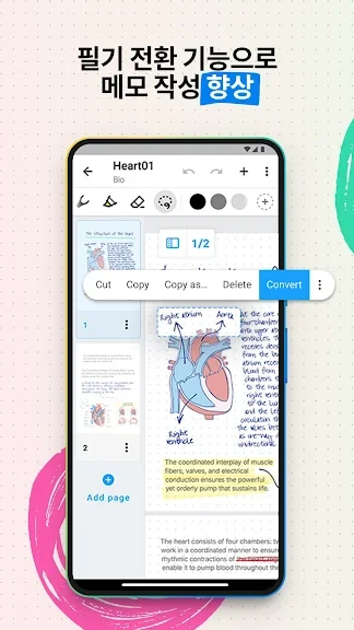OCR 기술을 통해 손글씨를 편집 가능한 텍스트로 변환하는 기능도 제공합니다. 이 기능은 문서 작성과 편집을 훨씬 더 간편하게 만들어줍니다.