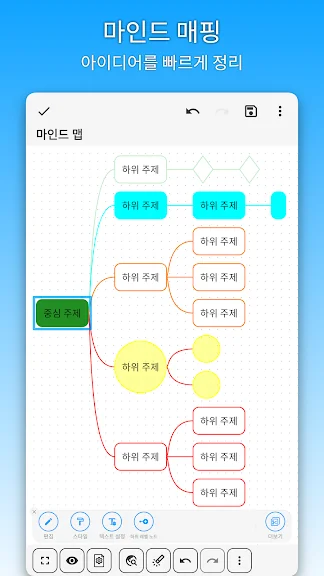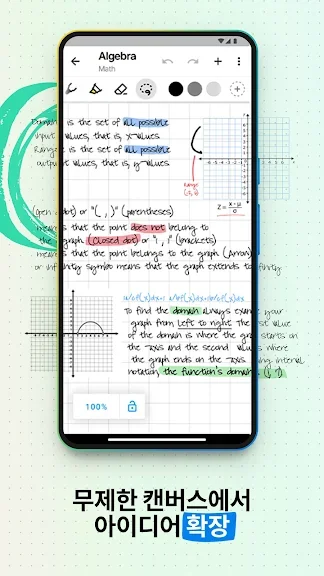 또한 Nebo는 무제한 캔버스를 제공해 브레인스토밍이나 마인드 매핑 같은 작업을 쉽게 수행할 수 있습니다. 확대/축소, 이동 등 자유로운 편집 기능을 통해 더 깊이 있는 메모와 아이디어 정리가 가능합니다.