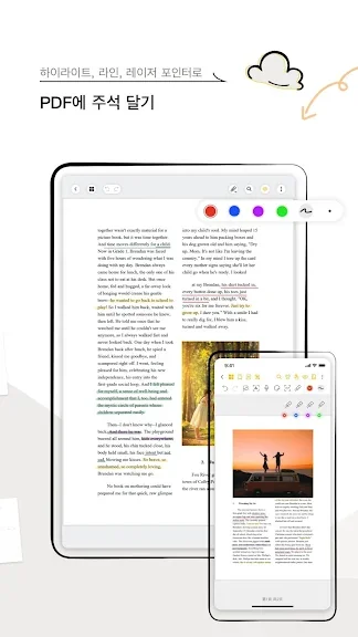 PDF 파일 주석 기능 역시 강력합니다. PDF 파일을 가져와 손쉽게 주석을 추가하고, 다양한 펜 도구로 강조표시나 색상 지정, 지우기 등의 작업을 빠르게 처리할 수 있습니다.