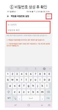 4) 백업 비밀번호 입력
