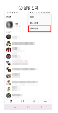 1) 카카오톡 실행 후 설정 메뉴로 이동
