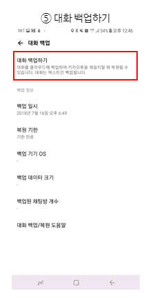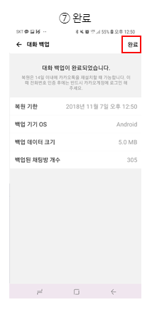 • 대화 보유량에 따라 백업 시간이 소요될 수 있습니다.