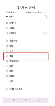 1) 카카오톡 실행 후 설정 메뉴로 이동