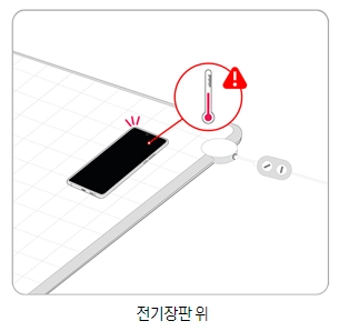 - 외부 열원이 가까운 상태: 전기 장판, 온열 매트, 핫팩 또는 차량 히터 등 열을 발생시키는 물건과 함께 기기를 사용할 경우 온도 상승이 일어날 수 있습니다.