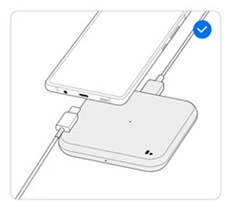 - 무선 충전 중 충전기와 기기 사이에 금속, 신용카드, 자석 등의 이물질이 있을 때