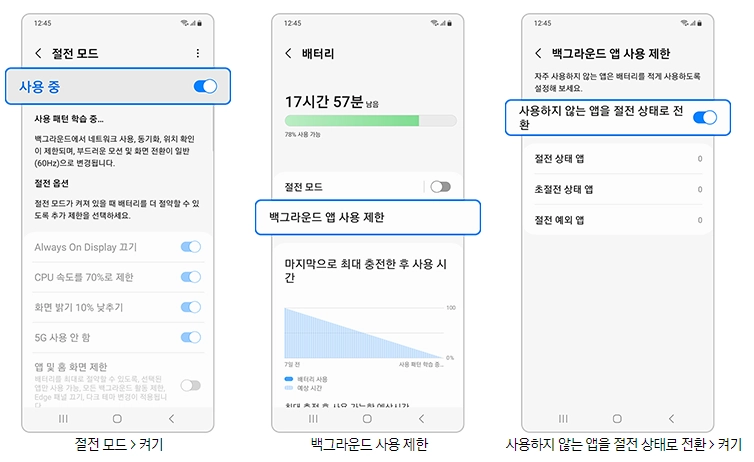 방법2. 백그라운드에서 실행중인 앱으로 인해 갤럭시 기기가 뜨거워질 수 있습니다. 이 문제를 해결하려면 '백그라운드 사용 제한'을 해보세요.