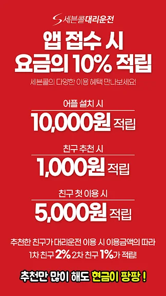 2) 세븐콜대리운전 어플만 설치해도 10,000점 즉시적립! 어플 스크린샷