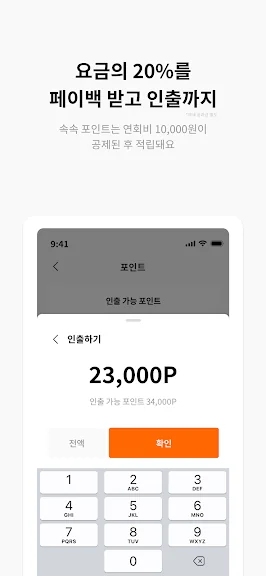 요금의 20%를 포인트로 캐시백 받고 원하는 계좌로 인출할 수 있어요.