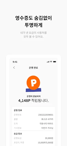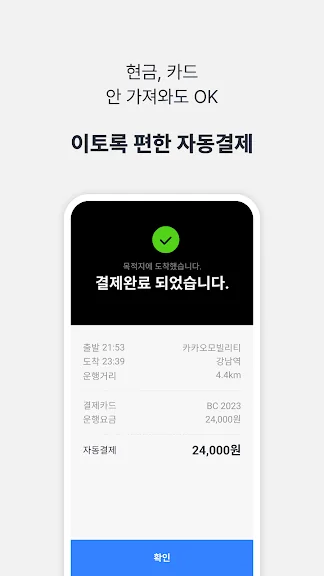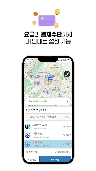 - 빠른 호출과 함께, 목적지 도착 후 간편하게 결제할 수 있어요.