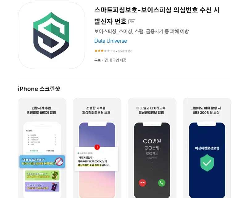 스마트피싱보호-보이스피싱 의심번호 수신 시 발신자 번호 앱 다운