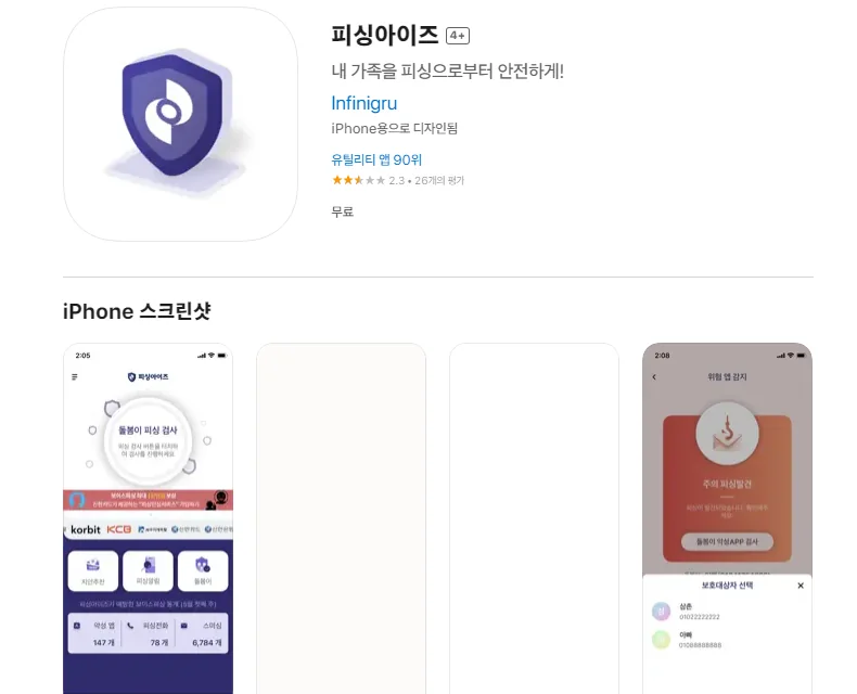 아래는 아이폰 피싱방지24 어플 스크린샷 정보입니다. 피싱방지24 어플 스크린샷 정보를 확인하고 싶으신분은 아래를 참고하시기 바랍니다.