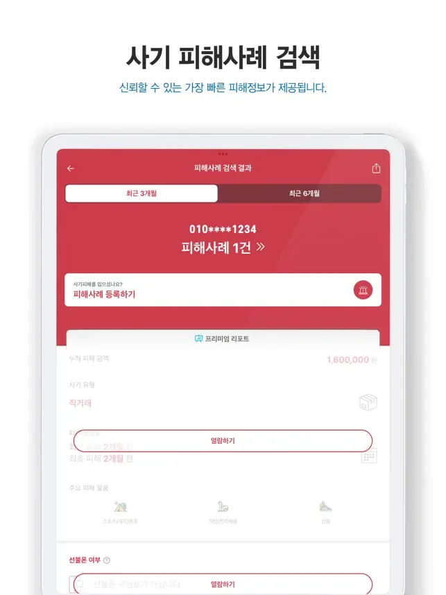 최근 6개월 동안 1건 이상 등록된 피해 정보를 검색할 수 있습니다.