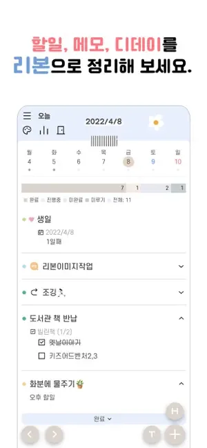 리본은 할일을 관리할 수 있어요.