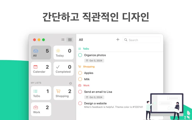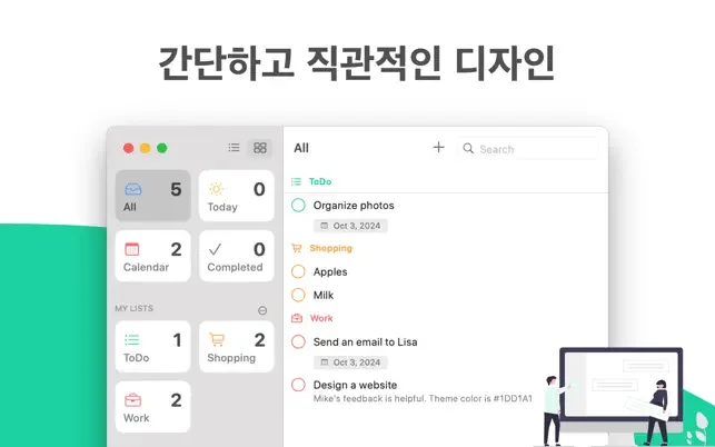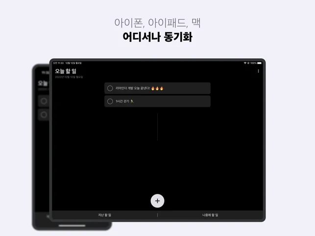 아이클라우드(iCloud) 동기화를 통해 나의 애플 기기 어디서든 오늘 할 일을 관리할 수 있습니다.