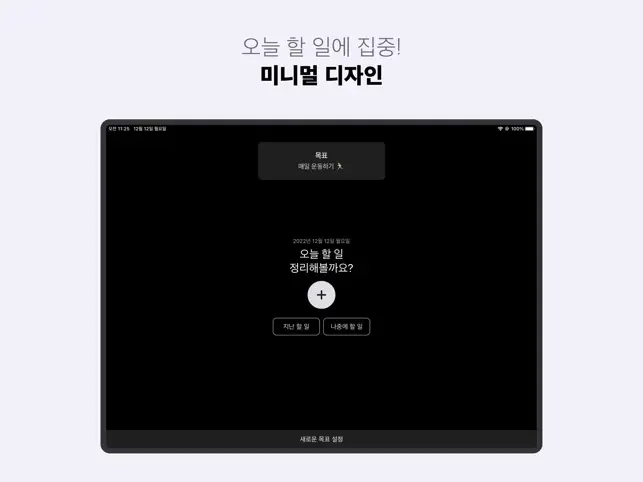 미니멀 디자인으로 오늘 할 일에만 집중할 수 있도록 도와드립니다. 오늘 할 일 앱의 가장 큰 목표는 '단순함'을 유지하며 오늘 할 일을 더 잘 정리하고 잘 완수할 수 있도록 돕는 일입니다.