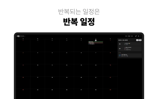 - 미리알림 리스트와 칼렌더의 손쉬운 관리