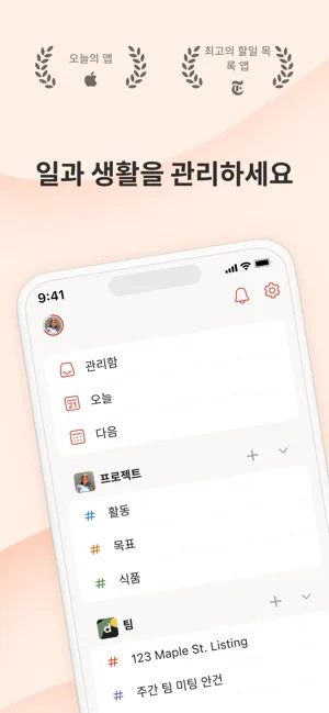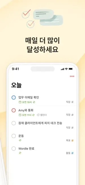 단순히 탭하여 작업을 추가하고 미리 알림을 설정하며, 캘린더, 목록, 보드와 같은 다양한 보기와 함께, 직장 및/또는 개인 업무별로 작업을 필터링하고, 프로젝트에서 공동 작업하며, 마음의 평온를 얻으세요.