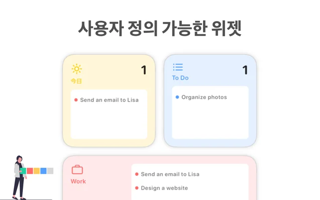 - 프리셋과 텍스트 조각으로 손쉽고 빠르게 할일 추가
