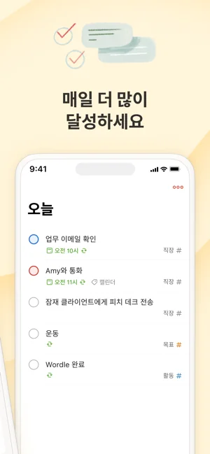 4,700만 명 이상의 사람들이 신뢰하는 Todoist는 개인 및 팀의 작업 관리를 단순화합니다. Todoist와 함께 즉시 머릿속을 정리하고 생산성을 높이는 습관을 형성하세요.