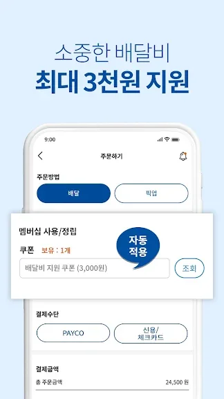 - 1인분도 무료배달 : 최소주문금액 9천원 고정! 1인분도 부담없이 즐겨요.