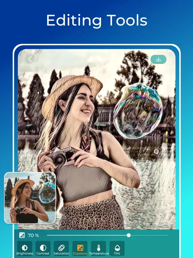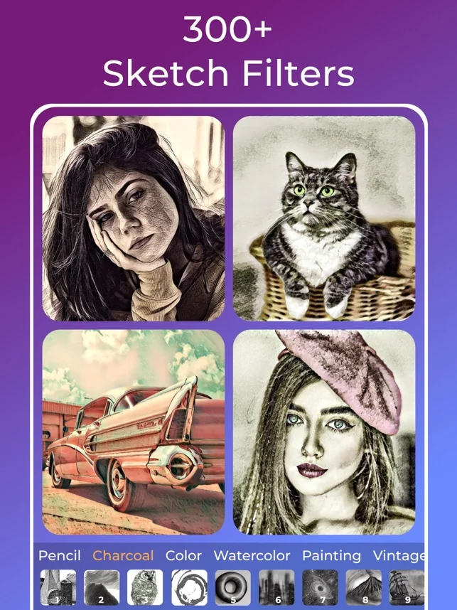 연필 드로잉이나 유화에 대한 독특하고 다양한 필터와 효과로 사진을 향상 시키십시오. 이 필터 편집기는 간단하고 빠르고 재미있는 사진 편집기입니다. 우리는 어떤 어플리케이션에도 존재하지 않는 필터와 효과를 가지고 있습니다.