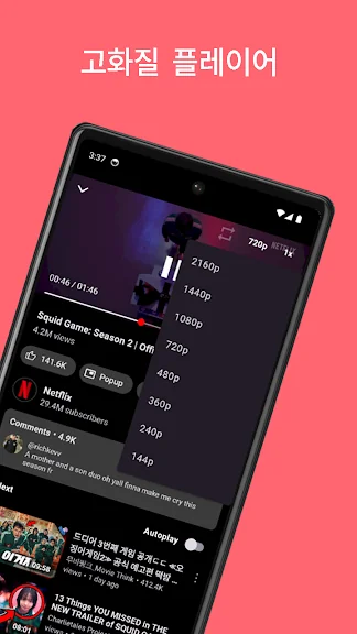 - 팝업플레이어 (PIP기능) 지원