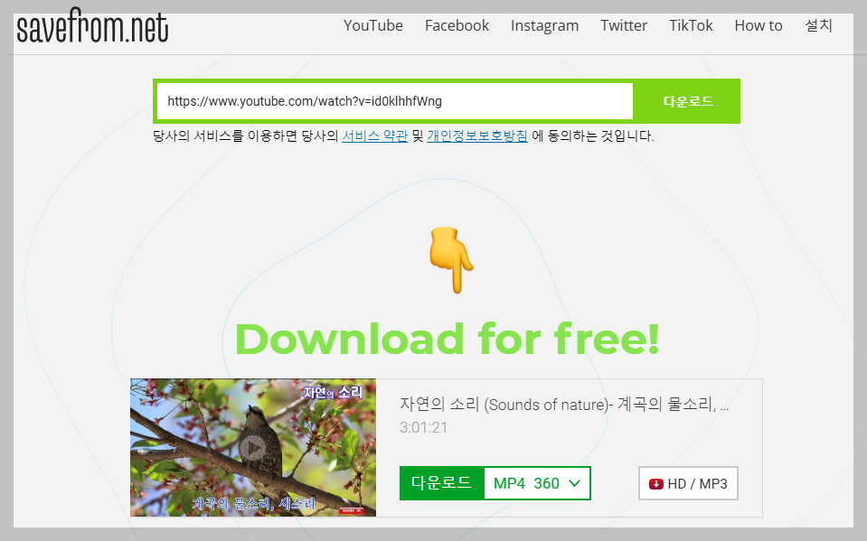 그러면 자동으로 다운로드 사이트로 연결되며, 이곳에서 영상의 품질이나 형식을 선택해 저장할 수 있습니다.
