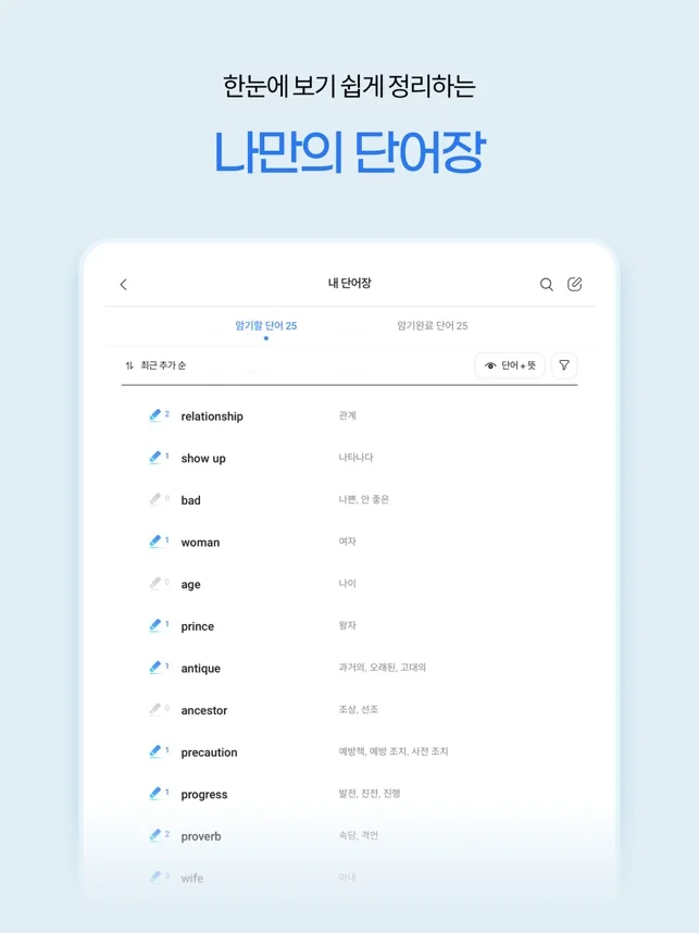 고등·수능 대비에 필요한 필수 영어 어휘를 하나의 어플로 쉽게 암기해보세요.