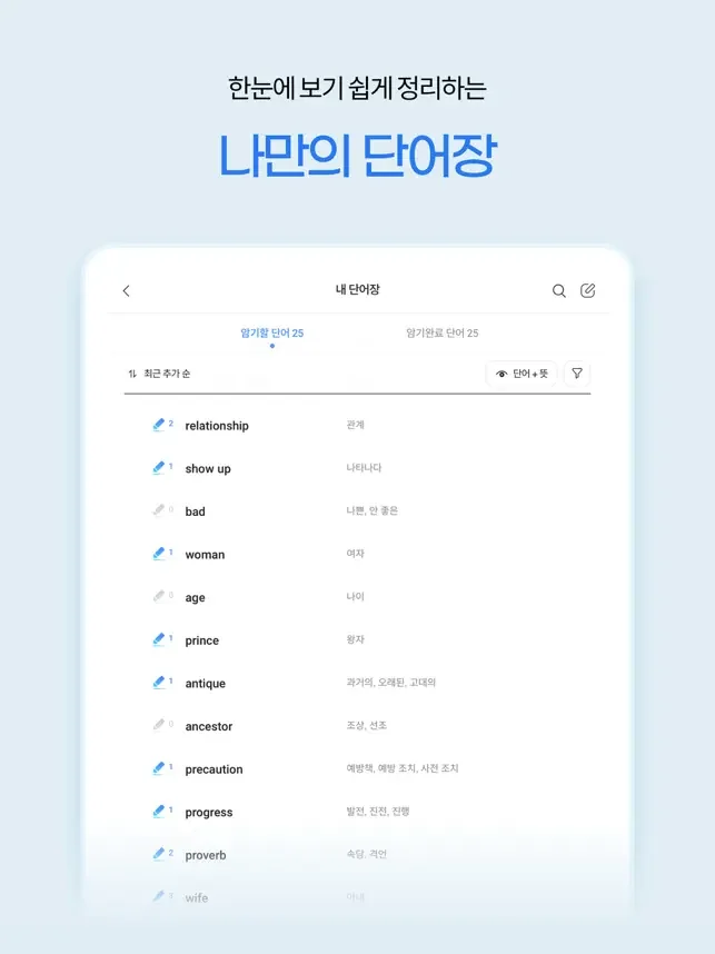 암기한 단어를 내 것으로 만들어 보세요.