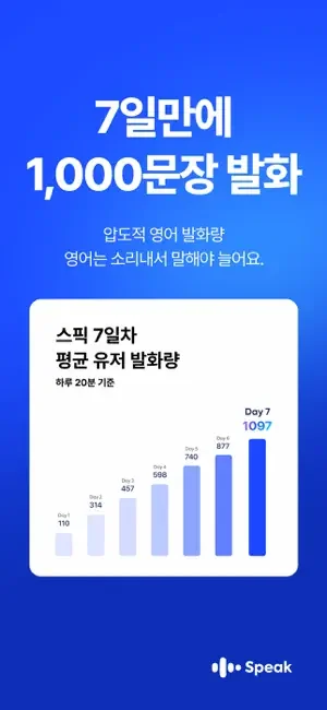 스픽은 현존하는 가장 빠르고 정확한 음성 인식 기능과 인공지능 기술을 활용한 영어 학습 앱으로, 기존에 없던 영어 회화 학습법을 선보입니다.