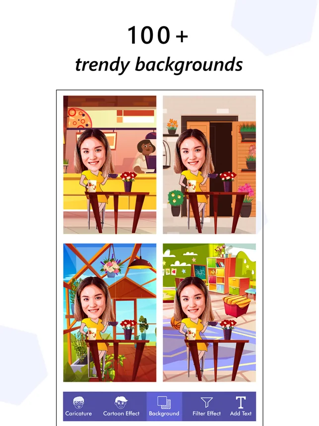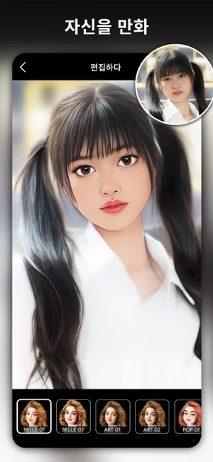 이 사진 편집기를 사용하여 전문가처럼 몇 초 만에 직접 만화에 도전해 보십시오. 사진 갤러리에서 달콤한 셀카 하나를 선택하고 멋진 3D 만화 캐릭터 메이커를 위한 수많은 캐리커처 얼굴 앱 필터를 적용하세요. 얼굴을 사랑스러운 애니메이션 영화 캐릭터로 쉽게 바꿀 수 있습니다. Instagram, Facebook, WhatsApp, Pinterest 및 TikTok에서 친구를 놀라게 할 준비를 해보세요.