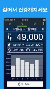 안드로이드 용으로 제작 된 만보기 및 거리 측정 앱입니다. 이 만보 앱은 자동으로 걸음 수, 걷는 거리, 걷는 시간, 거리측정 및 걷는 속도를 계산합니다. 저희의 간단한 만보기 사용으로 걸음 수를 측정해보세요. 매일 최소 10,000보를 걷다 보면 헬스 목표를 달성할 것입니다.