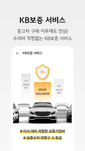 아래는 KB차차차 중고차매매, 내차팔기, 내차시세, 자동차금융 어플에 대한 스크린샷 정보입니다.