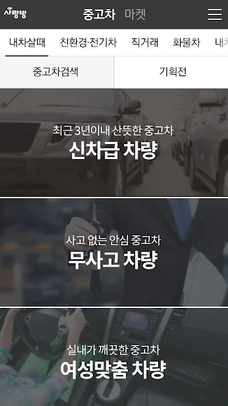 아래는 광주 중고차 - 사랑방 중고차 어플에 대한 스크린샷 정보입니다.
