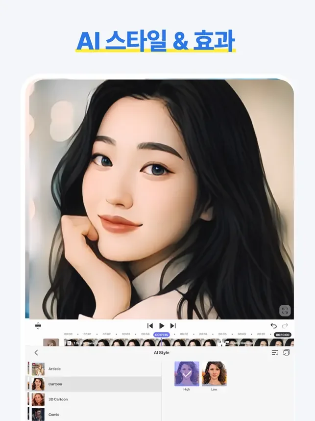 ● AI 스타일: 영상에 예술적 감성을 더하는 AI 효과 제공