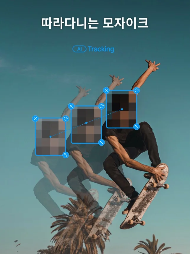 + 'AI 트래킹' 기능을 적용하여 1번의 탭으로 모자이크가 움직이는 대상을 자동으로 따라다니도록 편집할 수 있습니다.