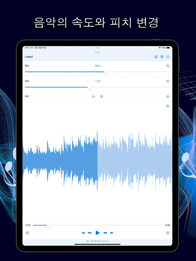 이 앱을 사용하면 피치는 그대로 유지하면서 속도만 조절하거나, 반대로 속도를 고정한 채 피치를 바꿀 수 있어요. 덕분에 음악을 연습하거나 공부할 때 특정 부분을 반복하거나, 자신의 목소리에 맞게 음악을 조정하는 일이 훨씬 수월해집니다.