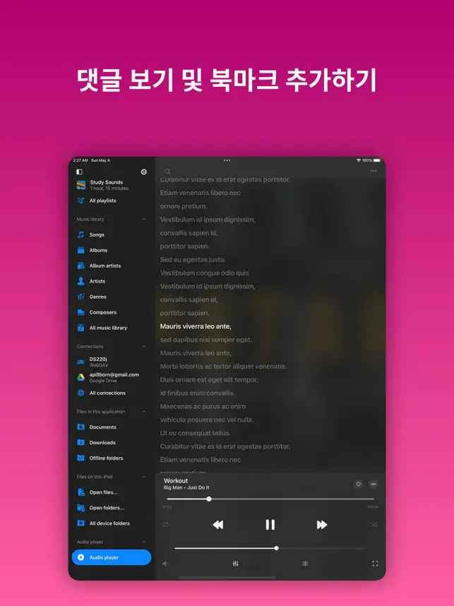 이 앱은 MP3, AAC, WAV 등 다양한 오디오 형식을 지원해서, 어떤 음악 파일이든 끊김 없이 들을 수 있답니다. 클라우드 서비스와 연결해서 원하는 음악을 바로 재생하거나, 미리 다운로드해 오프라인에서도 편하게 감상할 수 있어요.